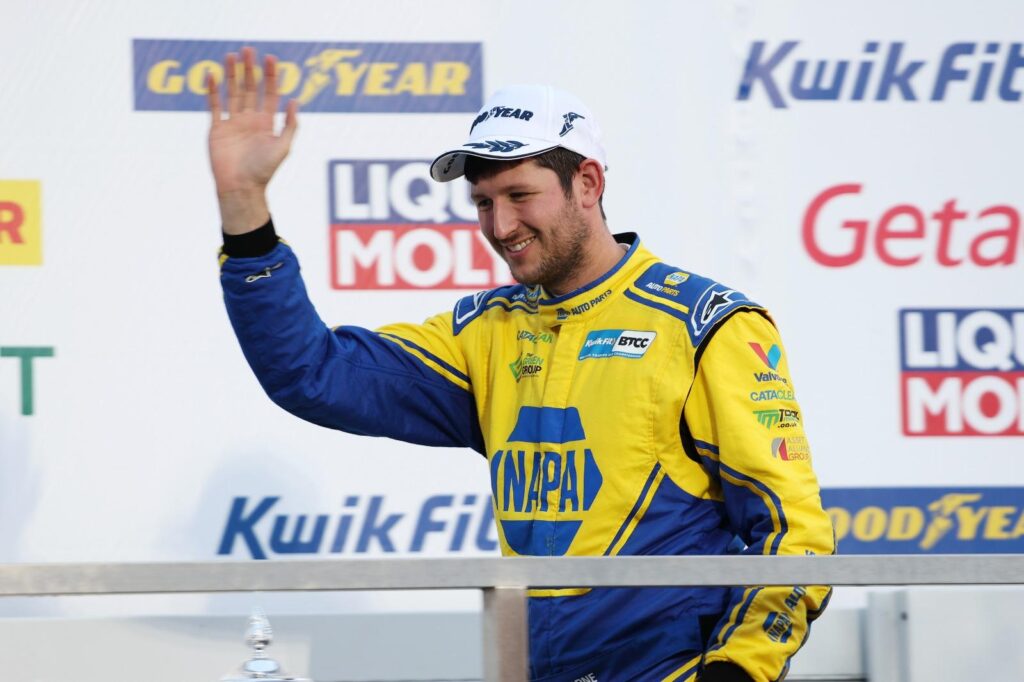 Racing resumed on the ninth (of a now 18 lap race), but Taylor-Smith (Toyota Gazoo Racing UK with IAA Toyota Corolla GR Sport) crashed out at Druids on the next lap to send out a second safety car.
