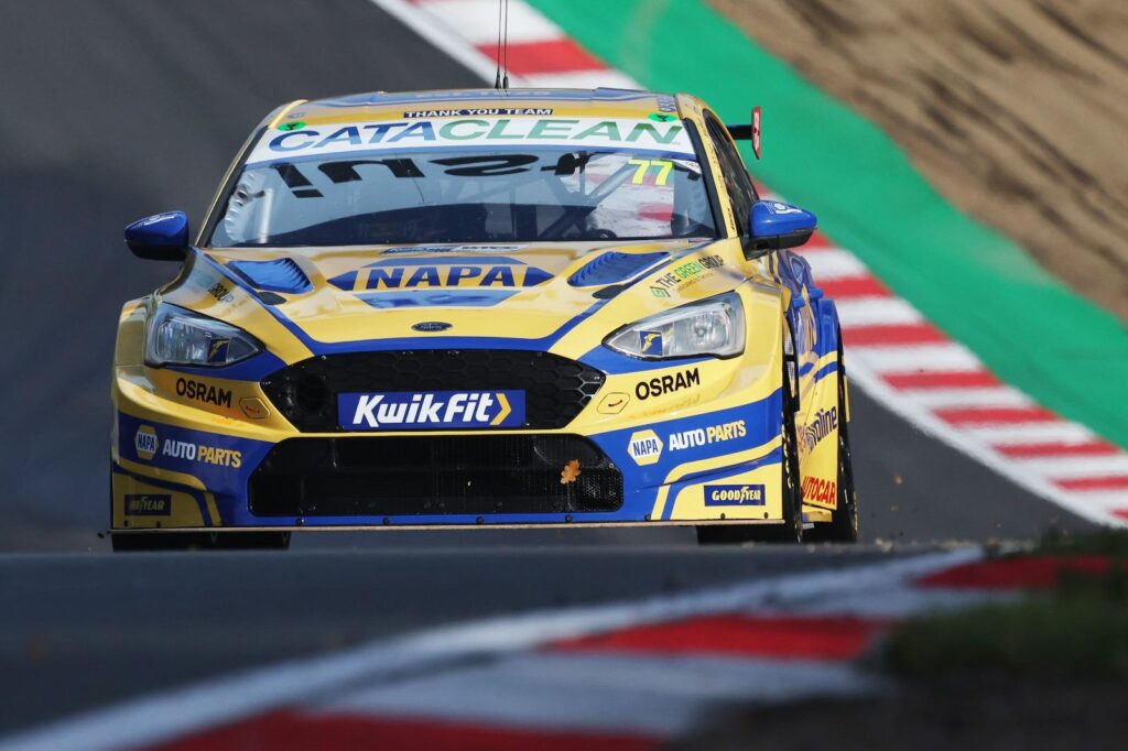 With Sam now back into the top ten, racing resumed on the eighth lap of now 18, which saw the number 77 Ford defending well from Dexter Patterson’s ROKiT Racing with Un-Limited Motorsport Cupra Leon, Chris Smiley’s Restart Racing Hyundia i30N, and the LKQ Euro Car Parts with WSR BMW 330i M Sport of Charles Rainford.